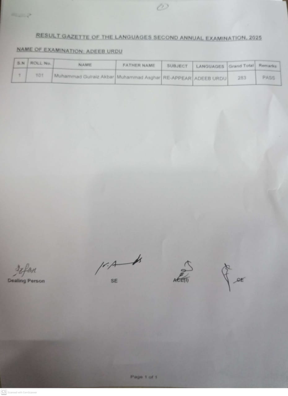 Result Gazette of the Languages 2nd Annual Examination 2025.