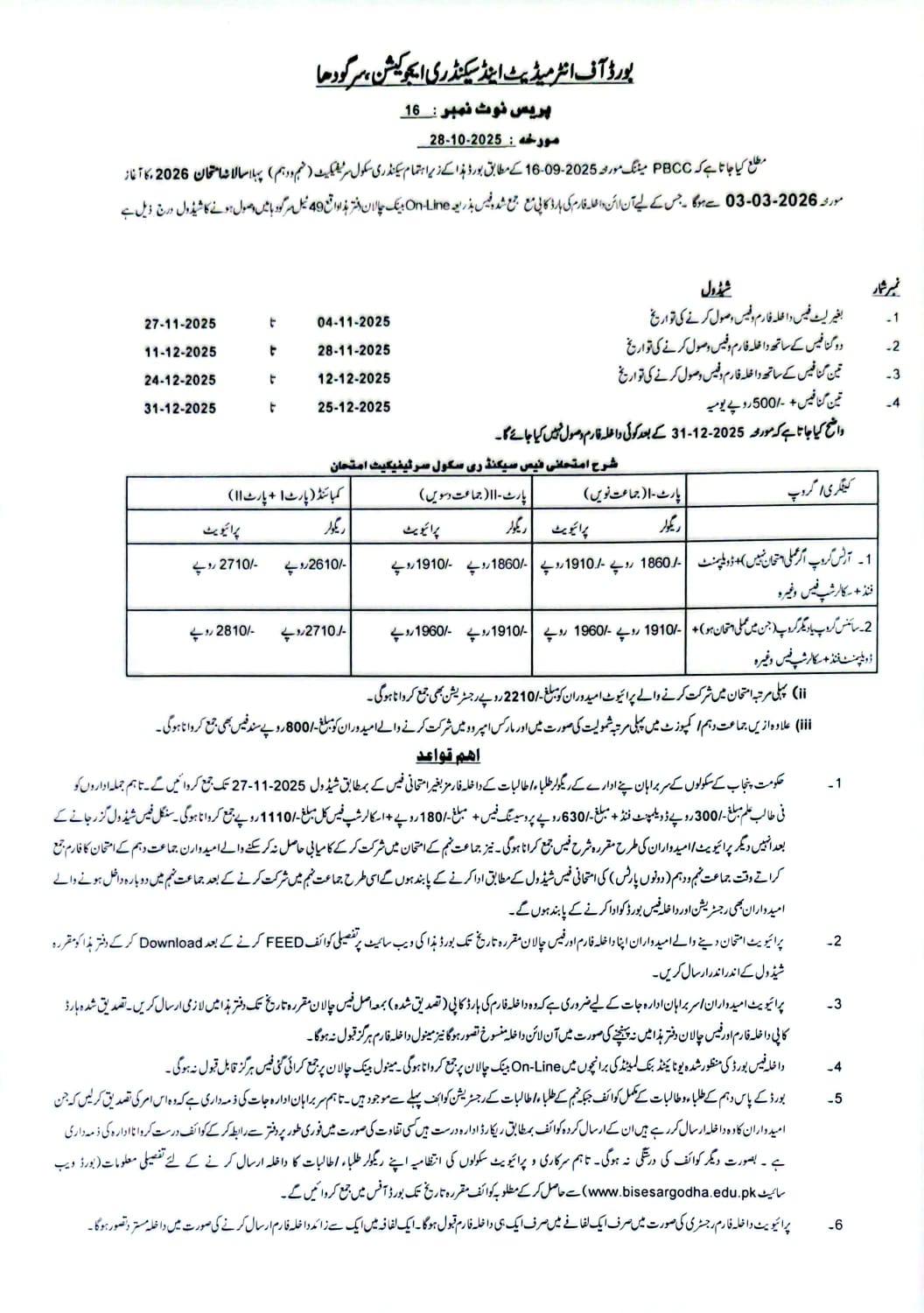 Press Note No 16 Dated 28-10-2025 Regarding SSC Ist Annual Admission Schedule 2026