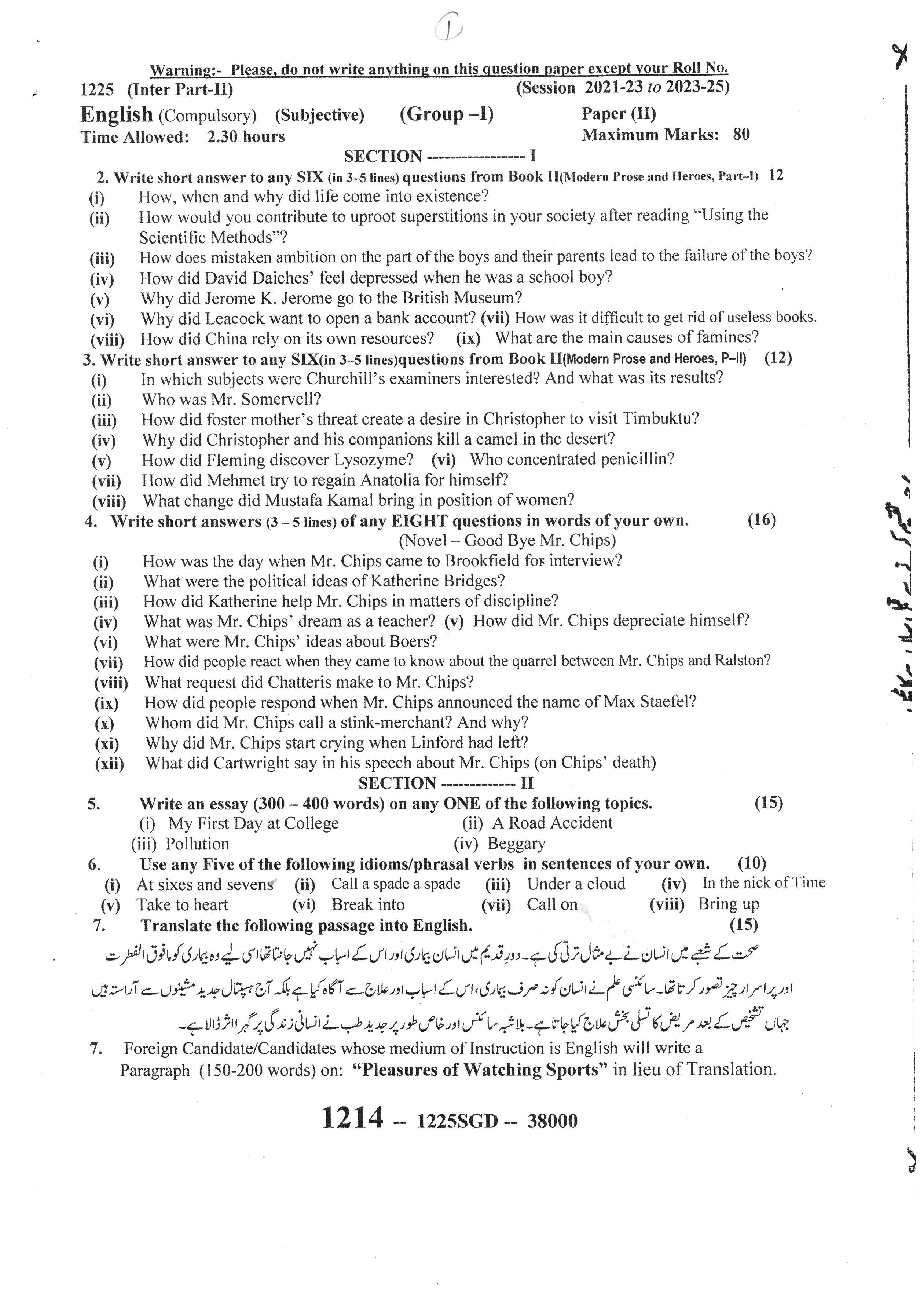 ENGLISH COMPULSORY (GROUP-II)Sequence 1Sequence 2Sequence 3Sequence 4Answer KeySubjective Paper2025-08-31