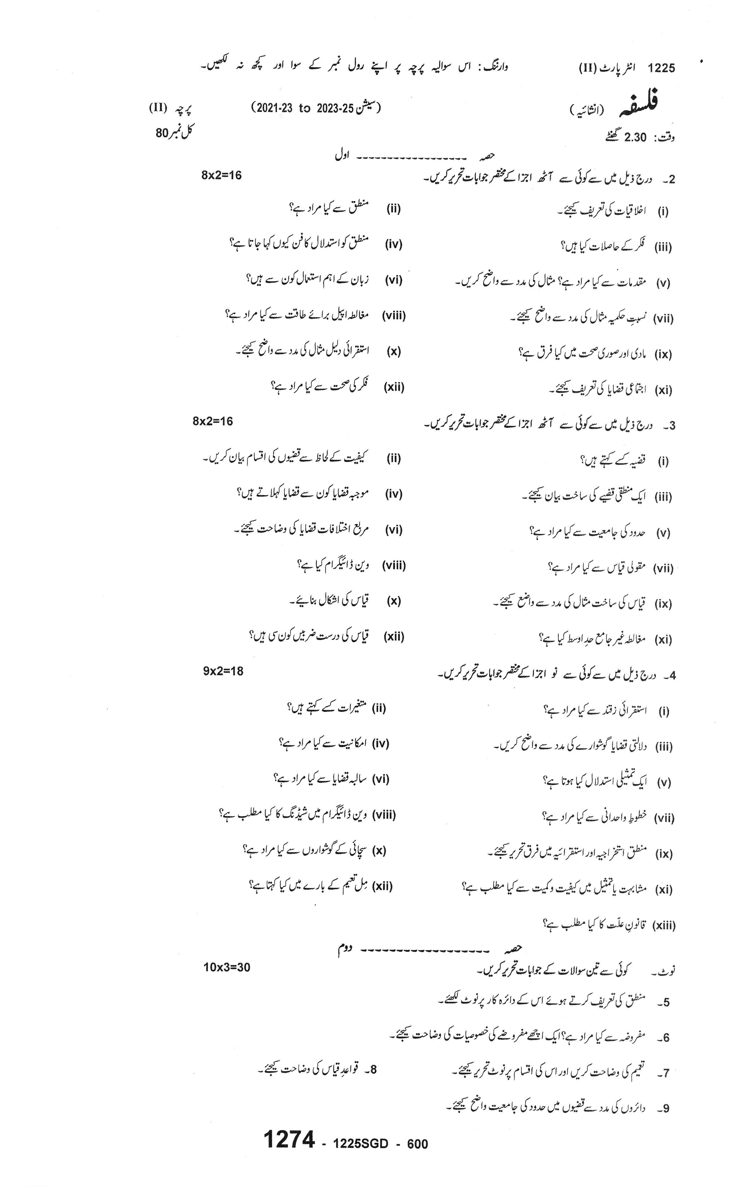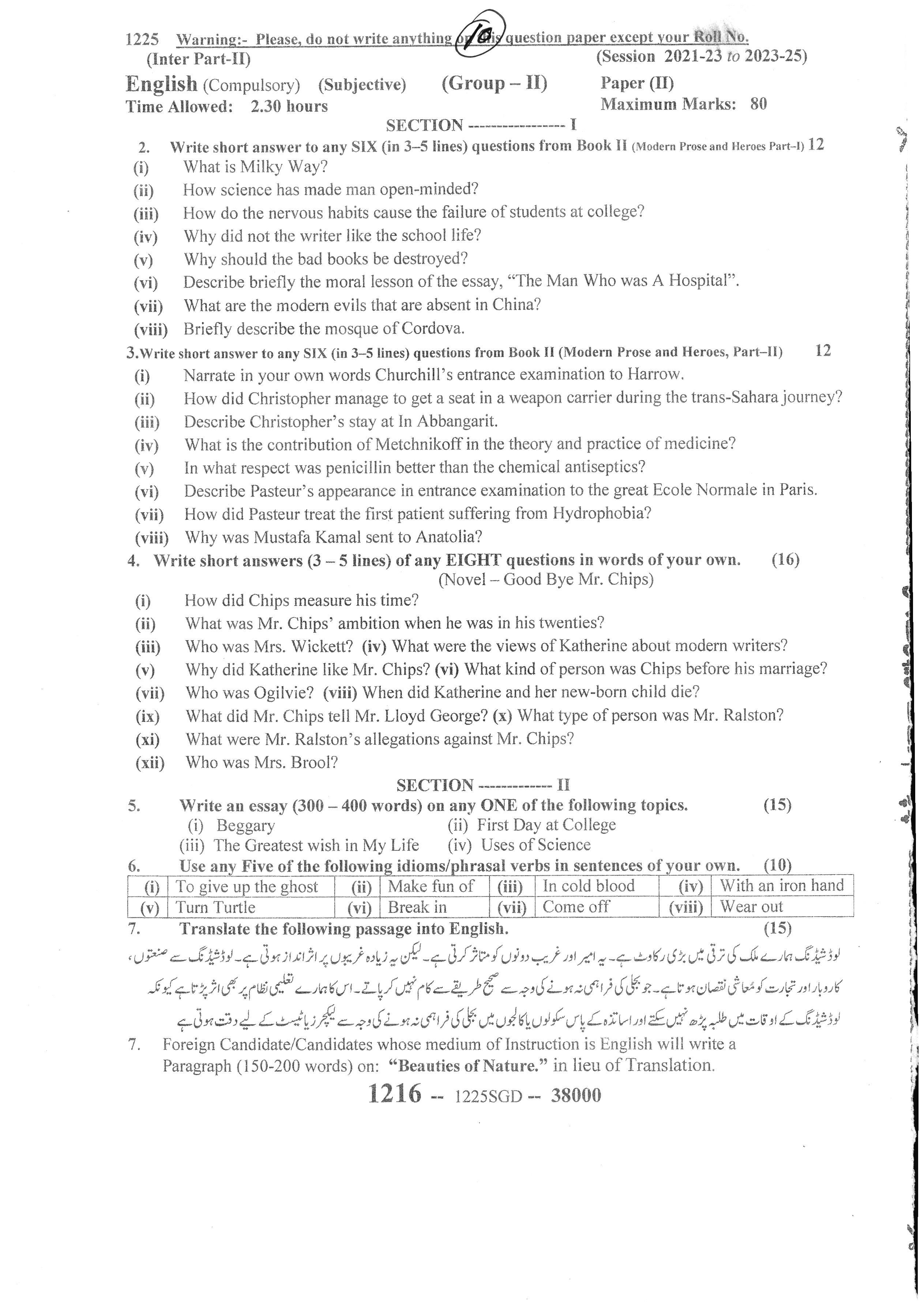 URDU (COMPULSORY)Sequence 1Sequence 2Sequence 3Sequence 4Answer KeySubjective Paper2025-08-31