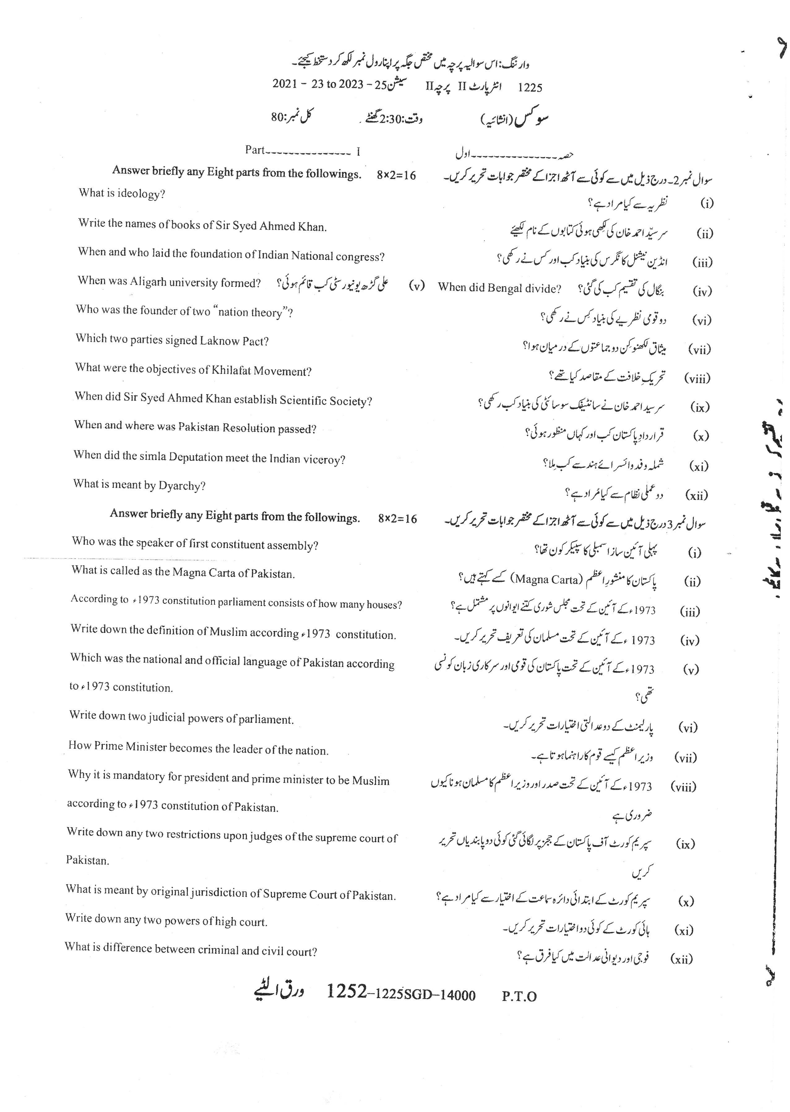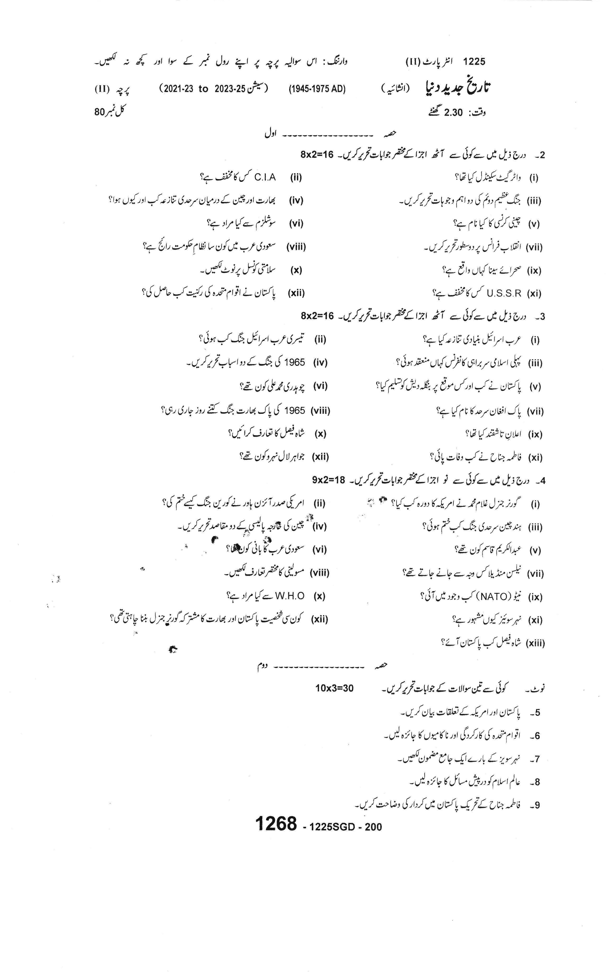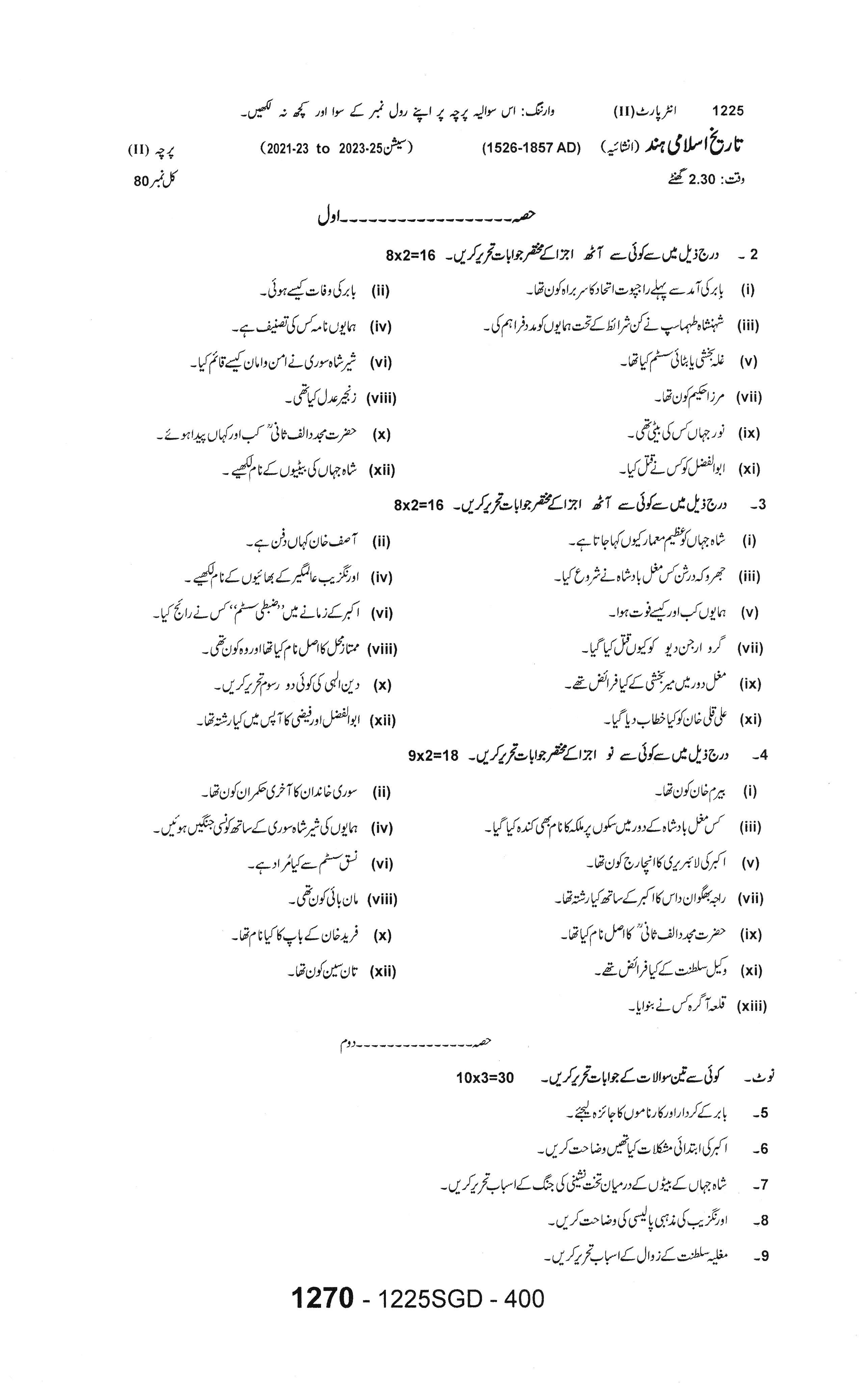 HISTORY OF PAKISTANSequence 1Sequence 2Sequence 3Sequence 4Answer KeySubjective Paper2025-08-31