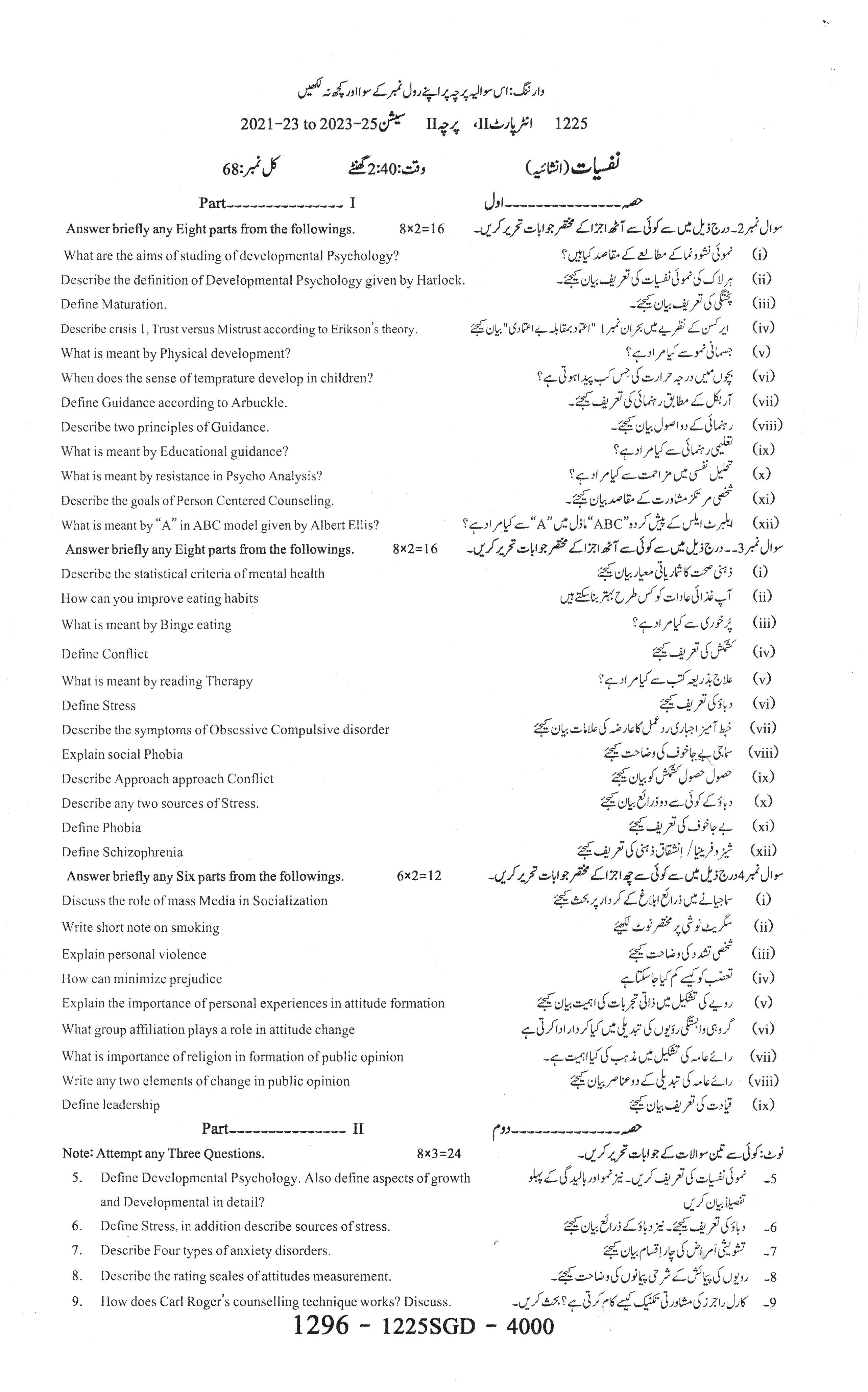 PSYCHOLOGYSequence 1Sequence 2Sequence 3Sequence 4Answer KeySubjective Paper2025-08-31