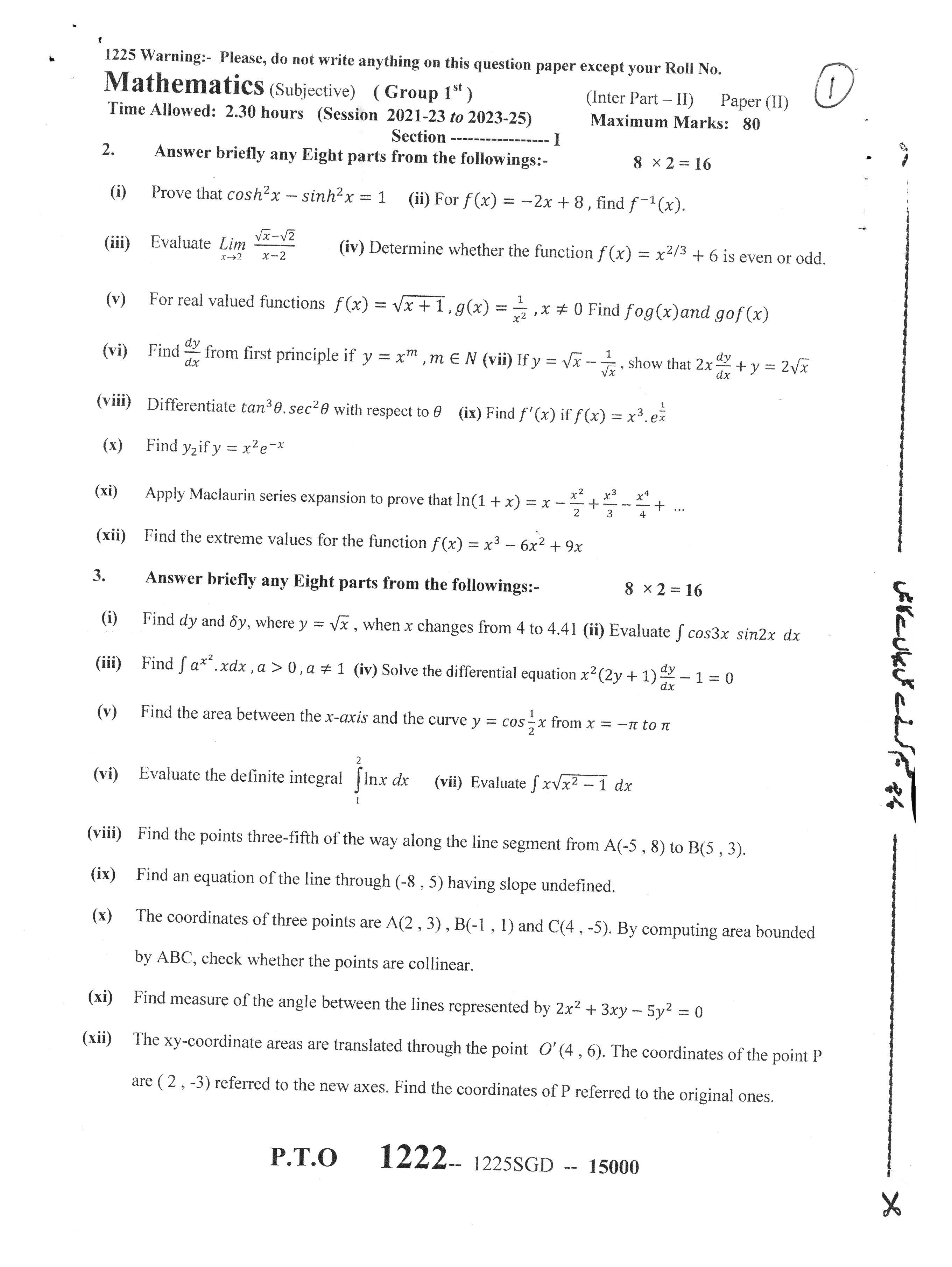 MATHEMATICS (G-I)Sequence 1Sequence 2Sequence 3Sequence 4Answer KeySubjective Paper2025-08-31