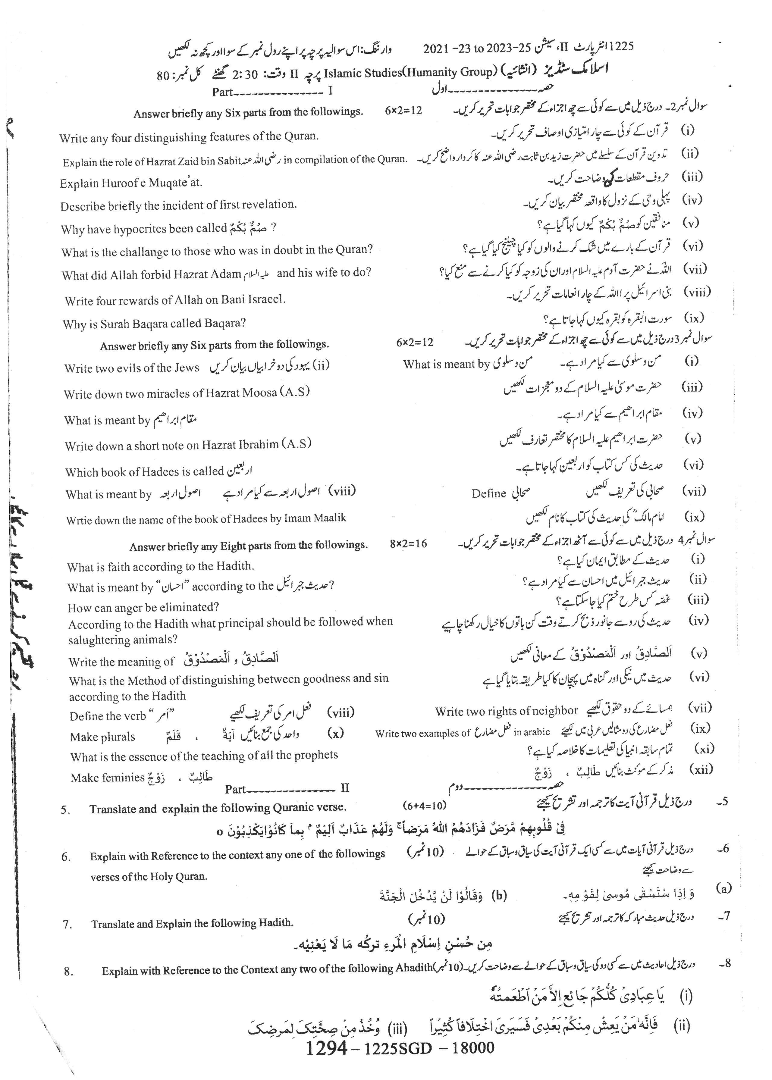 ISLAMIC STUDIES (IS-GROUP)Sequence 1Sequence 2Sequence 3Sequence 4Answer KeySubjective Paper2025-08-31