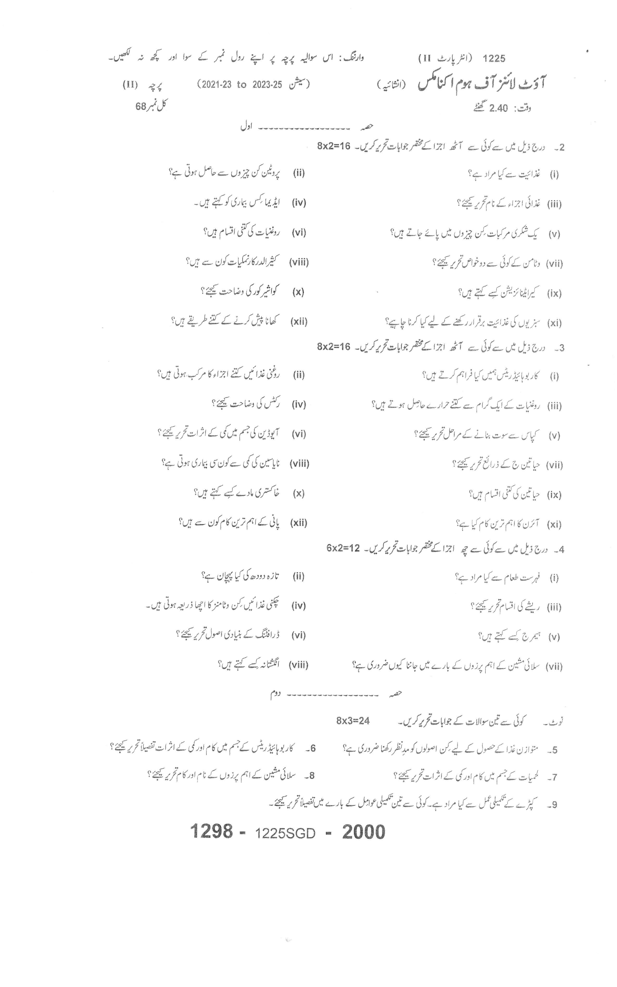 OUTLINE OF HOME ECONOMICSSequence 1Sequence 2Sequence 3Sequence 4Answer KeySubjective Paper2025-08-31