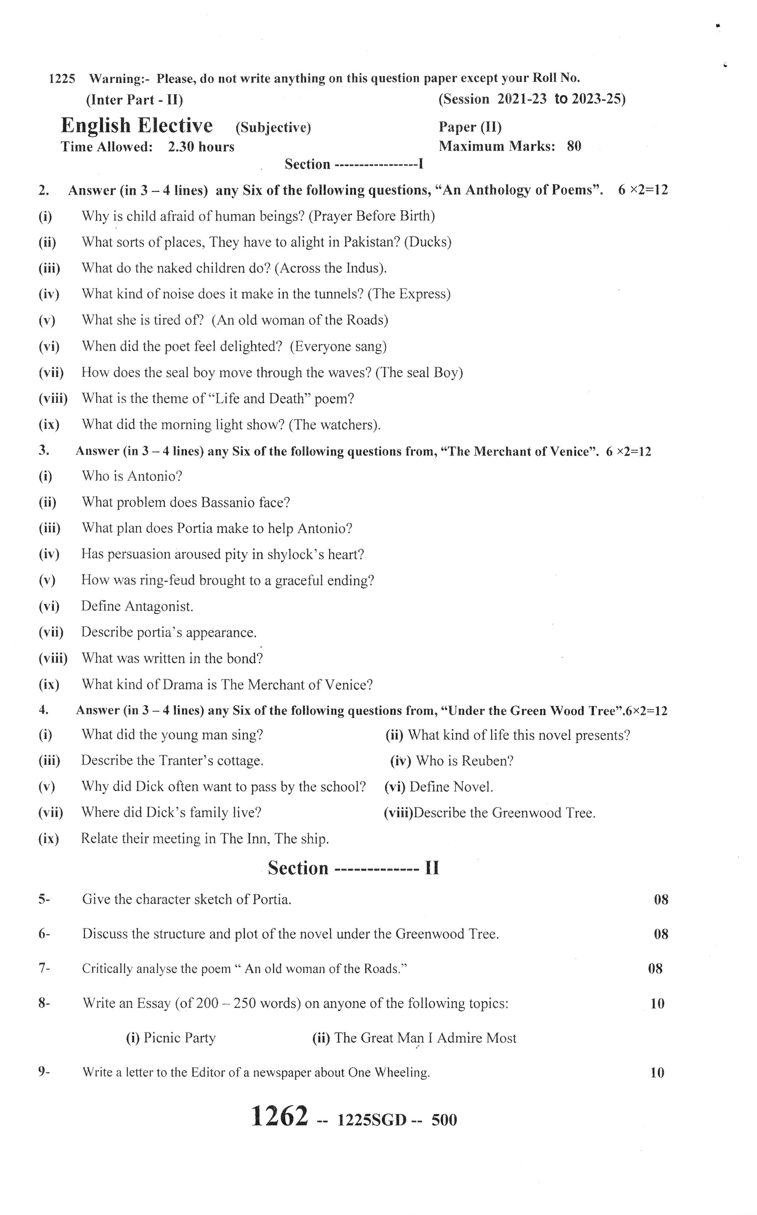 ENGLISH ELECTIVESequence 1Sequence 2Sequence 3Sequence 4Answer KeySubjective Paper2025-08-31