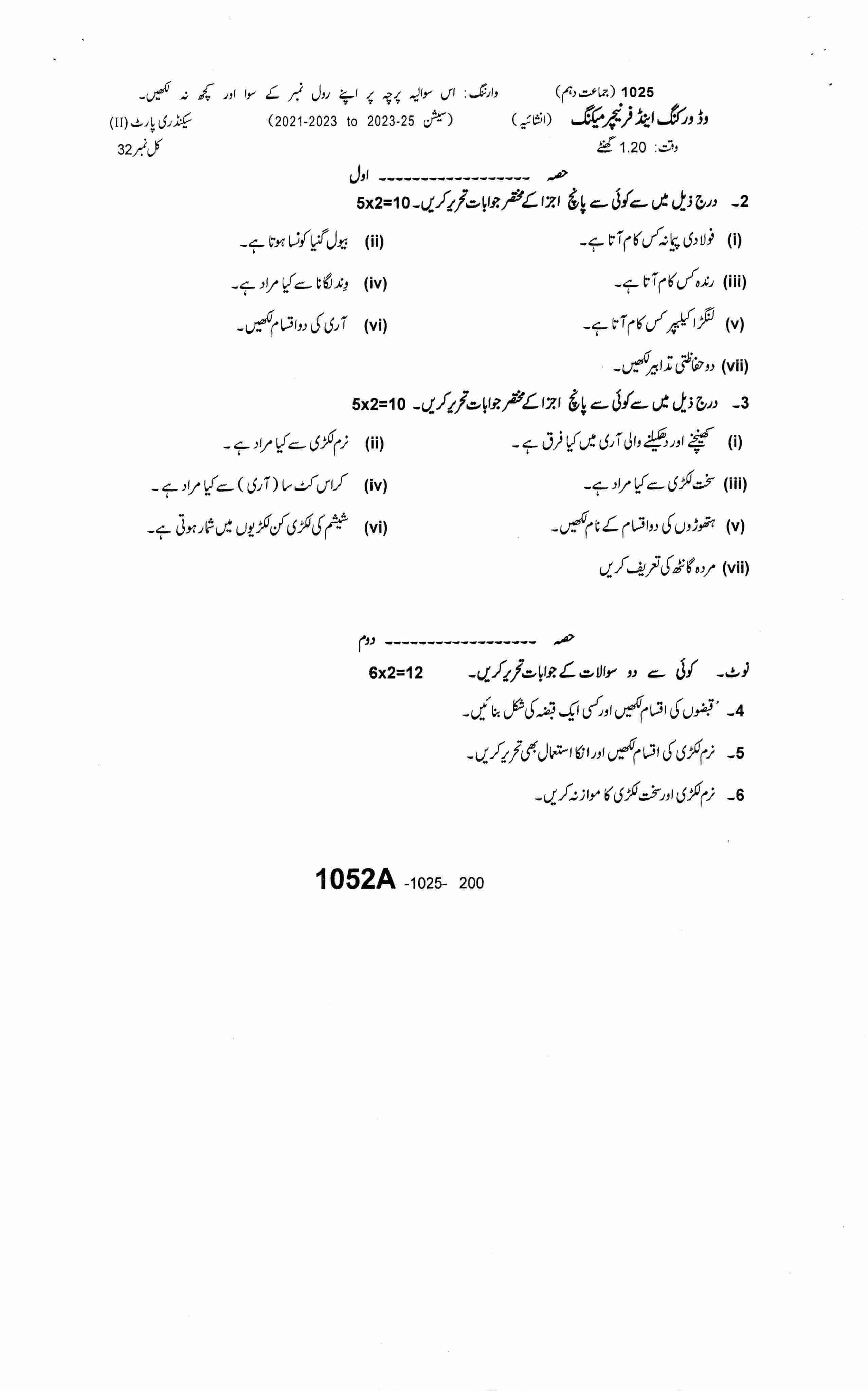 WOOD WORKINGSequence 1Sequence 2Sequence 3Sequence 4Answer KeySubjective Paper2025-07-20