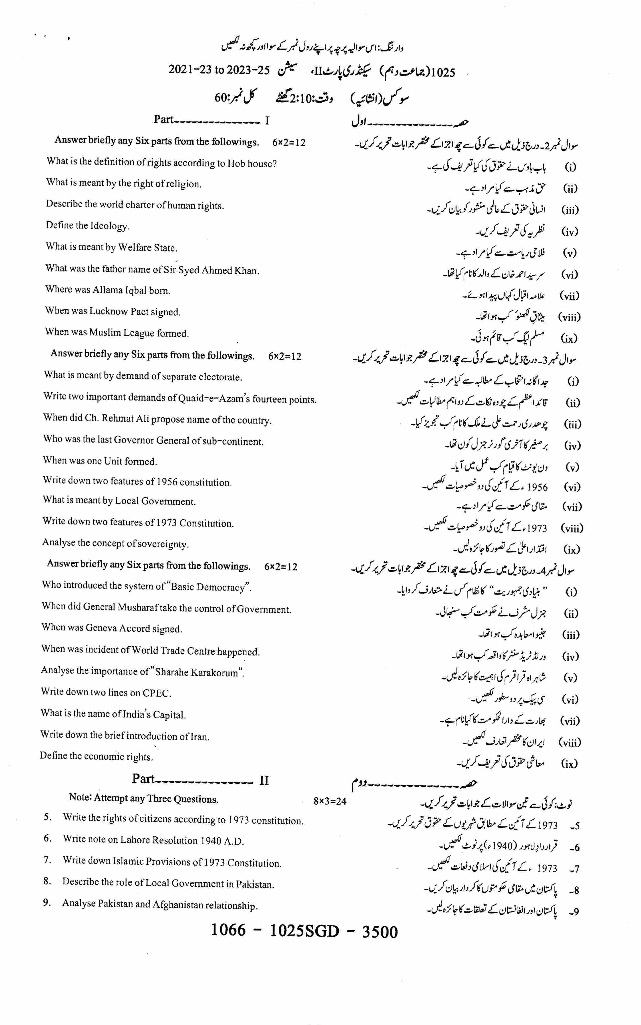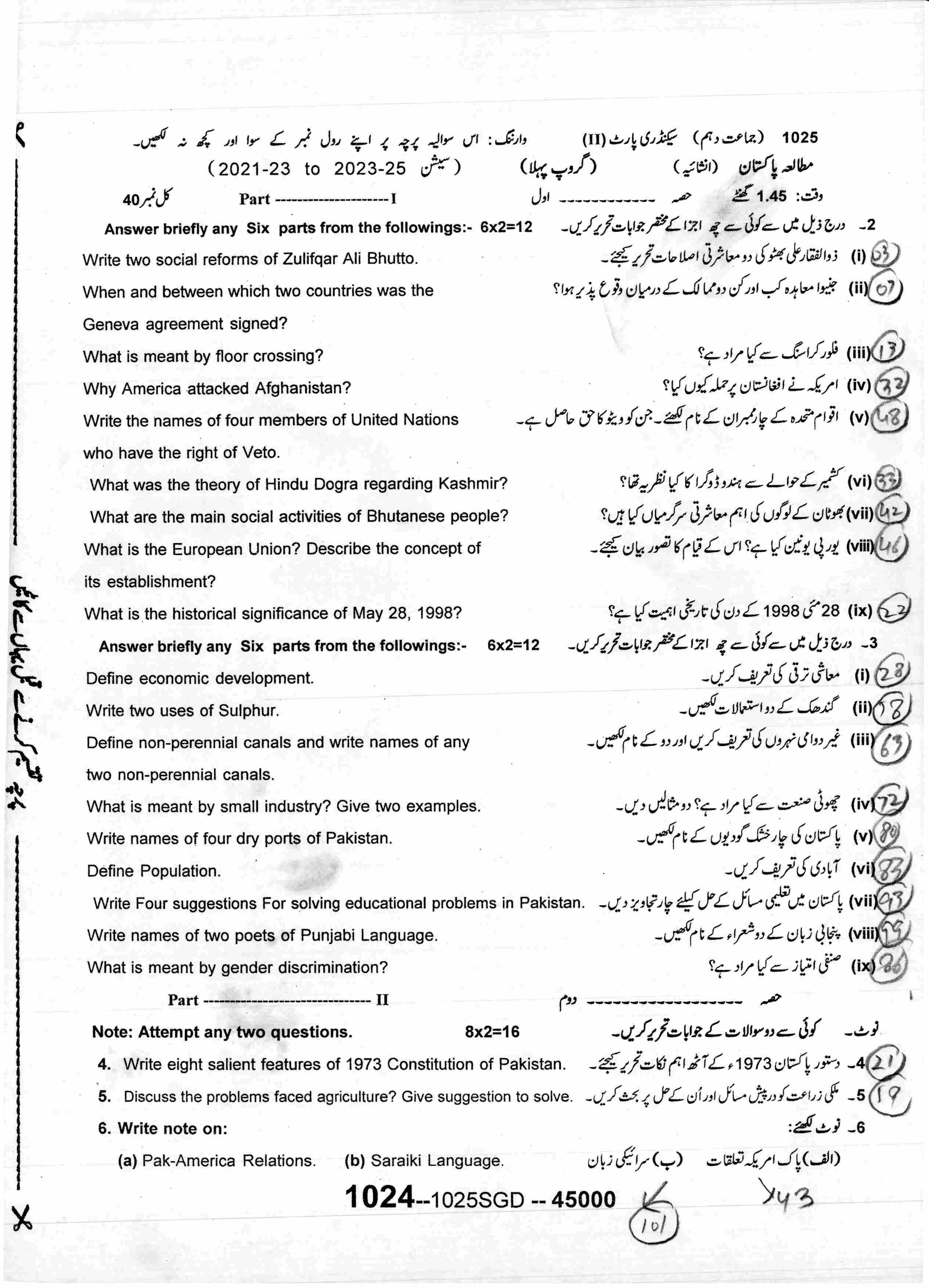 PAKISTAN STUDIES (COMPULSORY)Sequence 1Sequence 2Sequence 3Sequence 4Answer KeySubjective Paper2025-07-20
