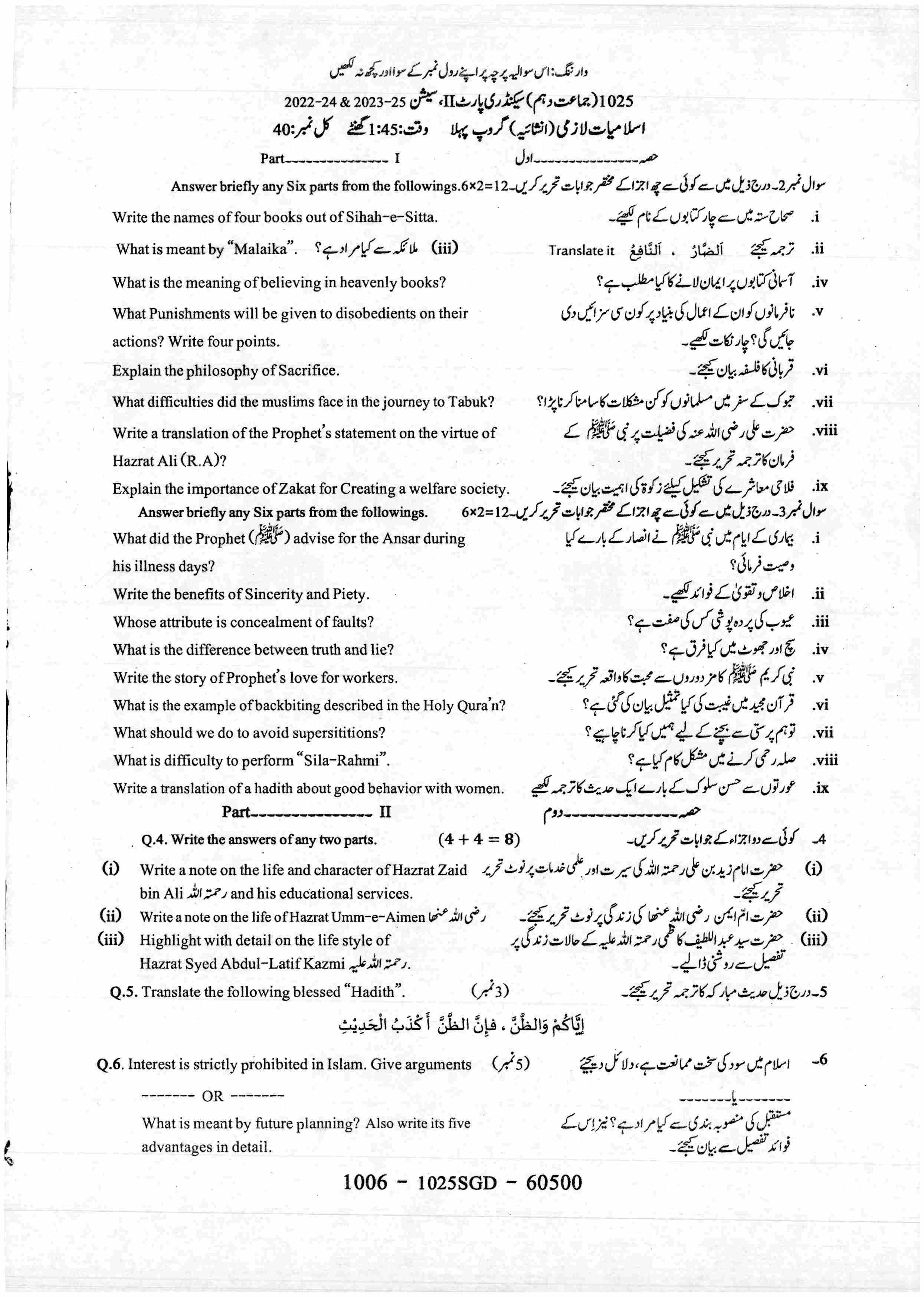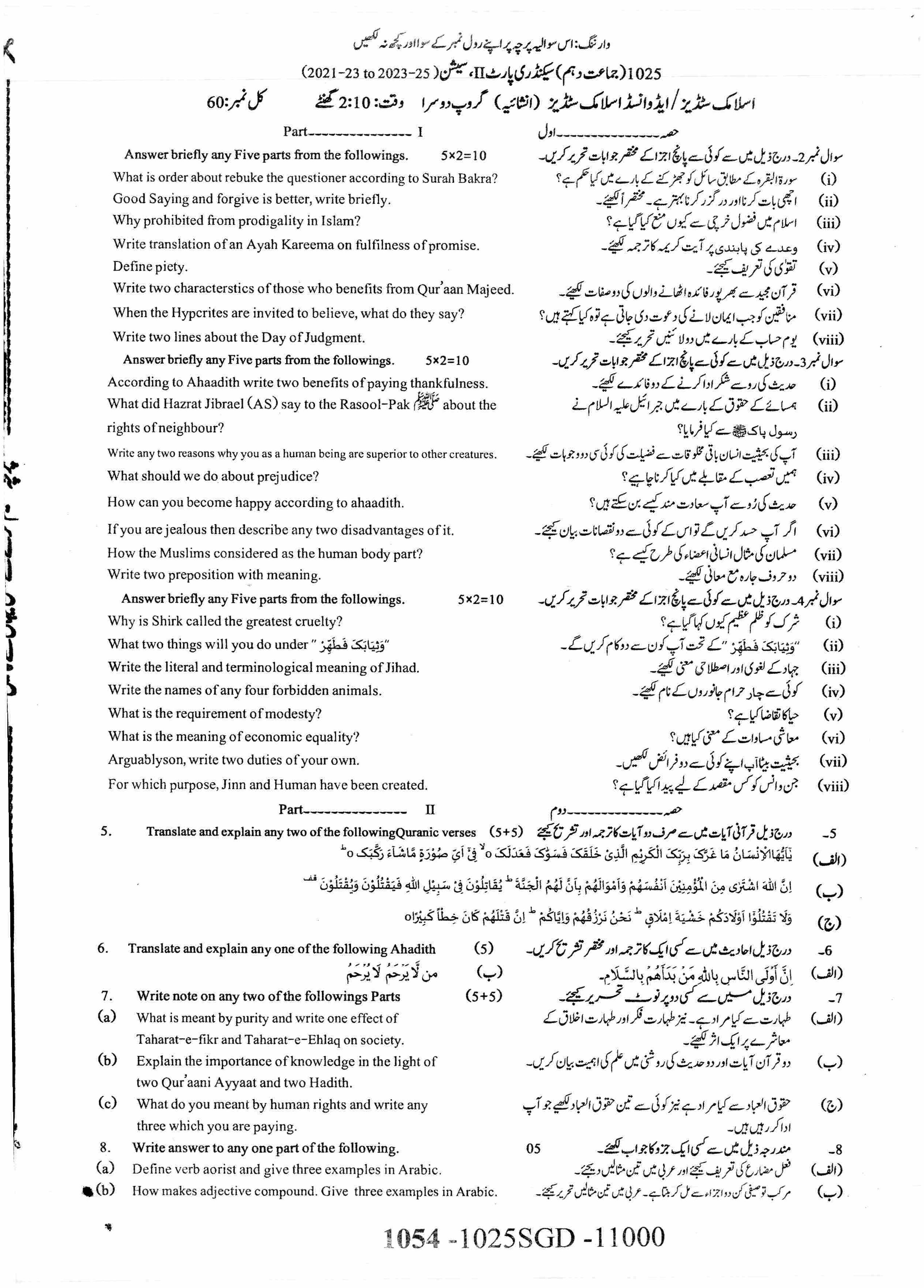 ISLAMIYAT COMPULSORY (NEW COURSE)Sequence 1Sequence 2Sequence 3Sequence 4Answer KeySubjective Paper2025-07-20