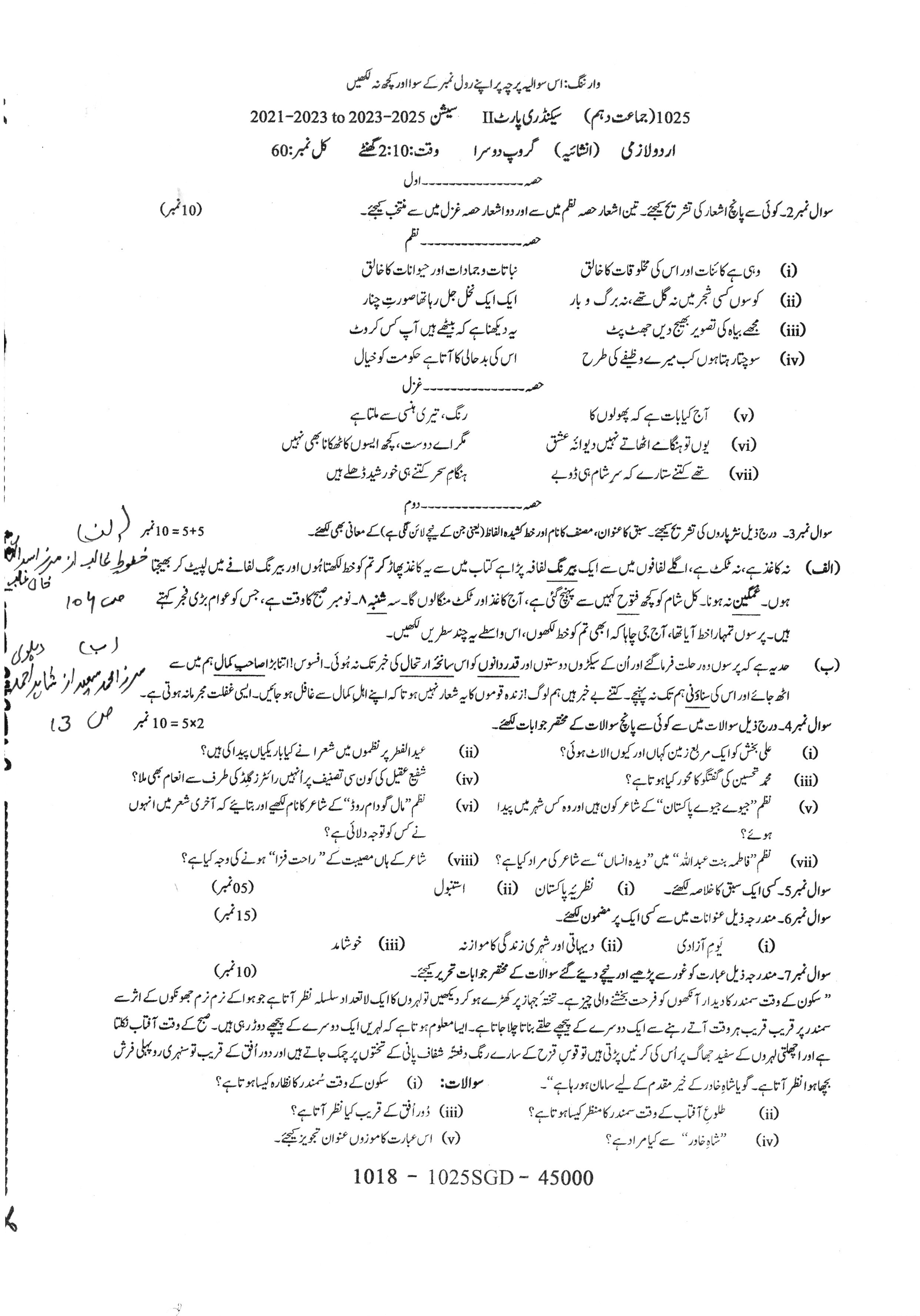 URDU (COMPULSORY)Sequence 1Sequence 2Sequence 3Sequence 4Answer KeySubjective Paper2025-07-20